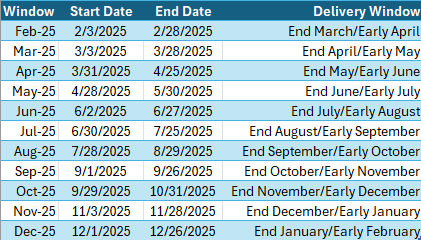 As the Syndicate scales and grows we are implementing ordering windows/timeframes for all products in the online store. Unless otherwise noted the following schedule will be used to manage all orders. Please contact with any special requests.